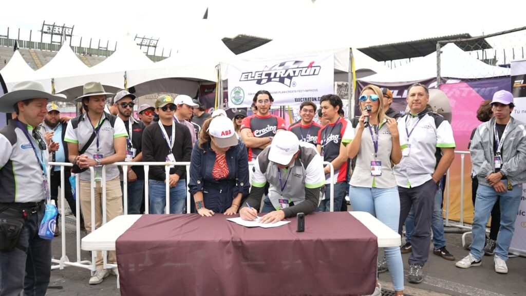 México, CDMX 13 de enero 2024. En esta fecha, y en el marco de la fecha inaugural del Mexico City ePrix de la FIA – ABB FORMULA E 2024, se dieron cita la M.B.A. Elisa Crespo -Presidenta Ejecutiva del Cluster Automotriz Regional Estado de México– y el Ing. Ricardo Rivas – Presidente del Comité Organizador Nacional de Electratón México, para realizar la firma de convenio que permitirá a ambas organizaciones sumar esfuerzos en el fomento, promoción y capacitación de la electromovilidad en nuestro país.