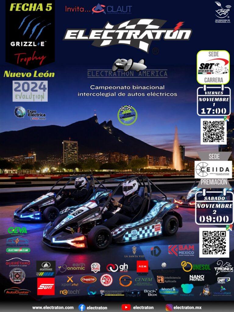 Kartódromo “Santiago Racing Track” Santiago, NL, viernes 01 de noviembre. Este día se realizó la quinta y final fecha del XXVII campeonato “Grizzl-E TROPHY”, invita CEIIDA UANL, con el apoyo del Clúster Automotriz de Nuevo León edición 2024 de ELECTRATON, con casi 30 años como actividad sin fines de lucro que fomenta el uso y desarrollo de autos eléctricos en universidades, fomentando el desarrollo de habilidades y tecnología para una movilidad más eficiente, sostenible y amigable con el medio ambiente .