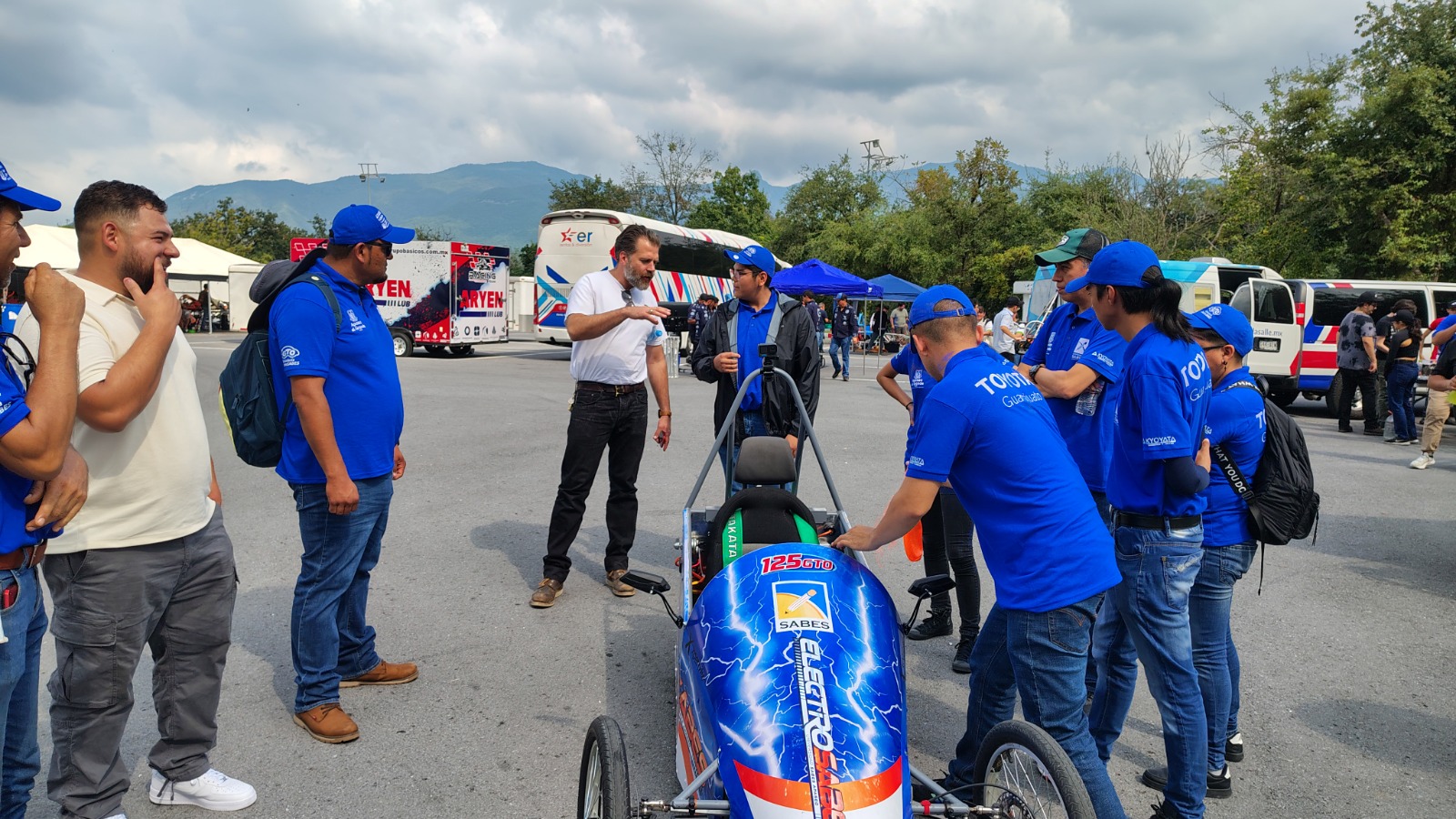 La bandera a cuadros Cat. America fue ondeada por Mr. Forrest Hawthorn. de Electrathon America. También nos acompañaron Alejandro Rodríguez de Electromobility Firefighting Agency (EFA) , expertos en prevención y abatimiento de incendios por baterías de litio , quienes ya forman parte del grupo de asesores de Electratón en fomento a la electromovilidad contando con experiencia en GM nada más y nada menos desde la época del desarrollo del famoso EV1 de los 90’s. La invitación que extendimos a nuestros aliados en el Cluster Automotriz de Nuevo León, nos permitió contar con la presencia de personal de Driven Innovation Center, centro dedicado al desarrollo tecnológico y proyectos para el sector automotriz. Tal es el caso del M. en I. Yussef Nesme por cierto también ex-electratoner y digno representante de nuestra comunidad en el sector automotriz. De esto se trata Electratón también, de crecer la red de contactos y fortalecer el networking entre miembros de la comunidad.